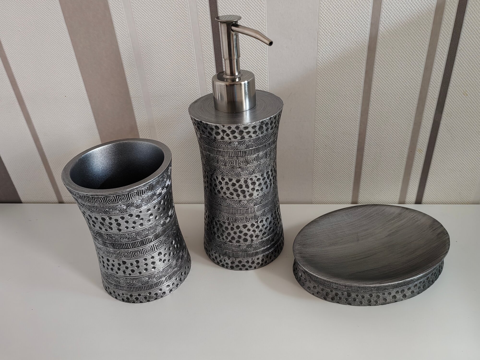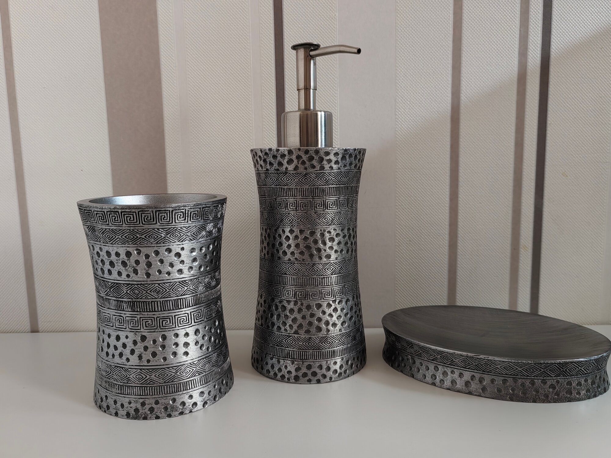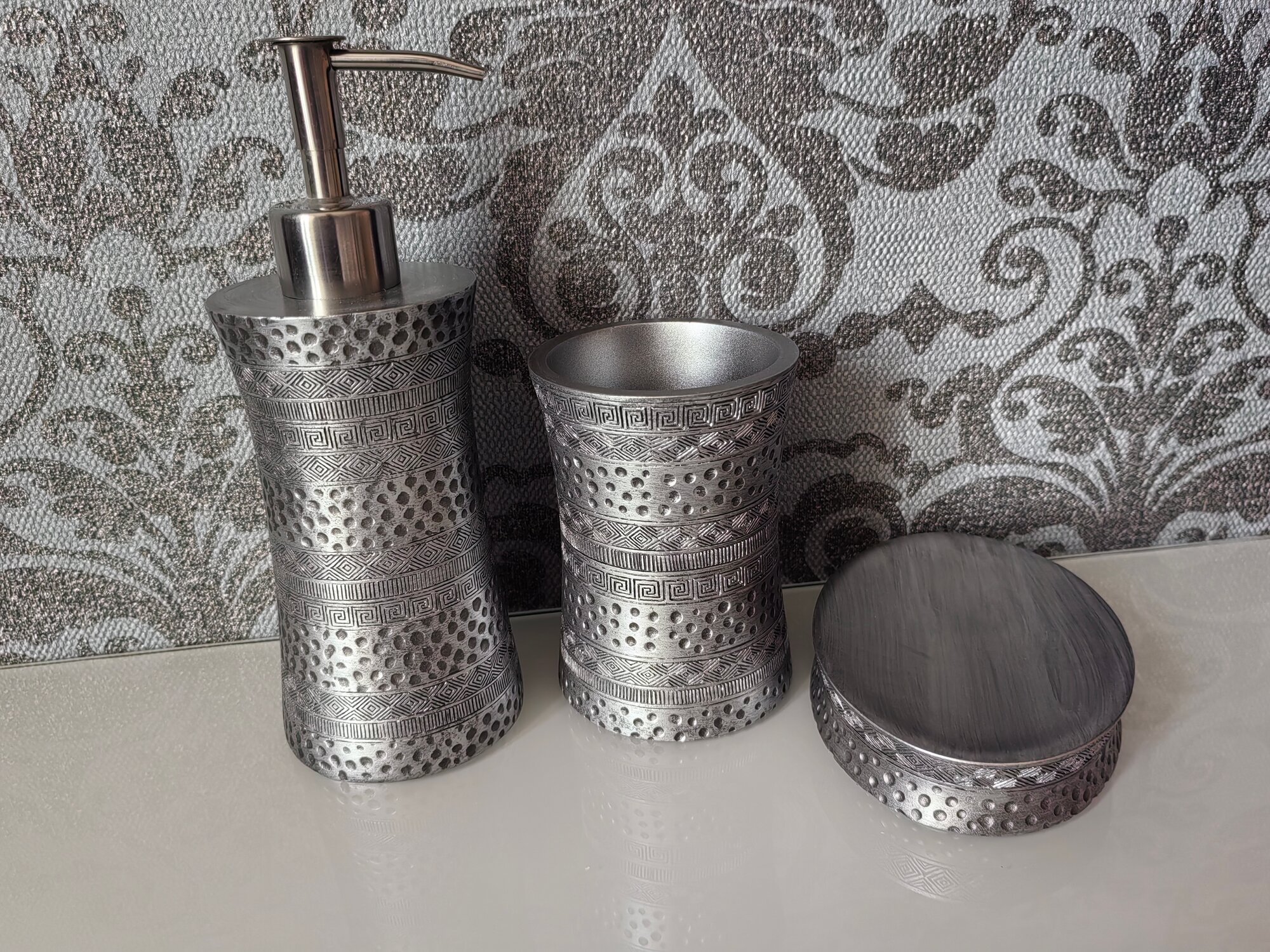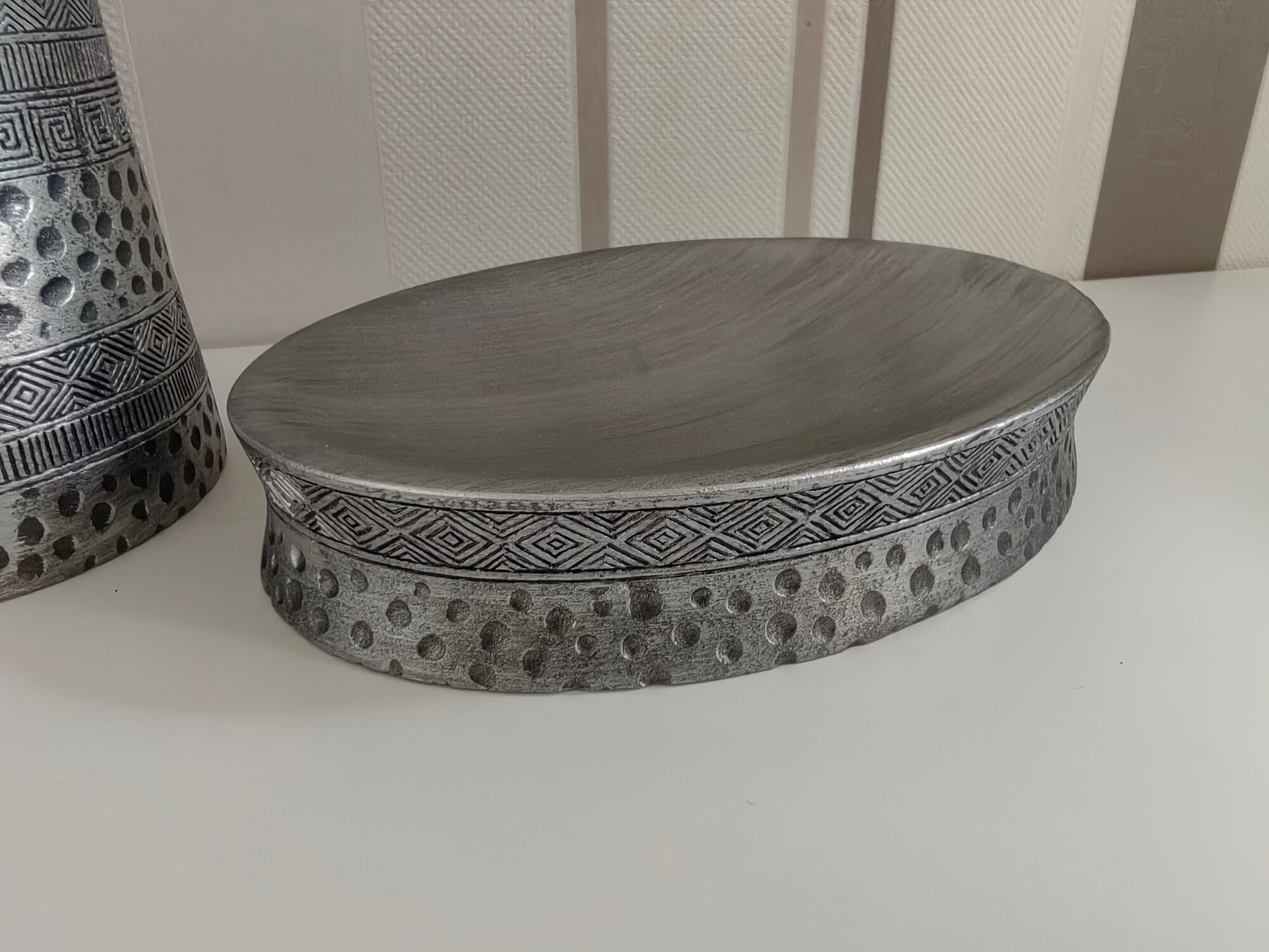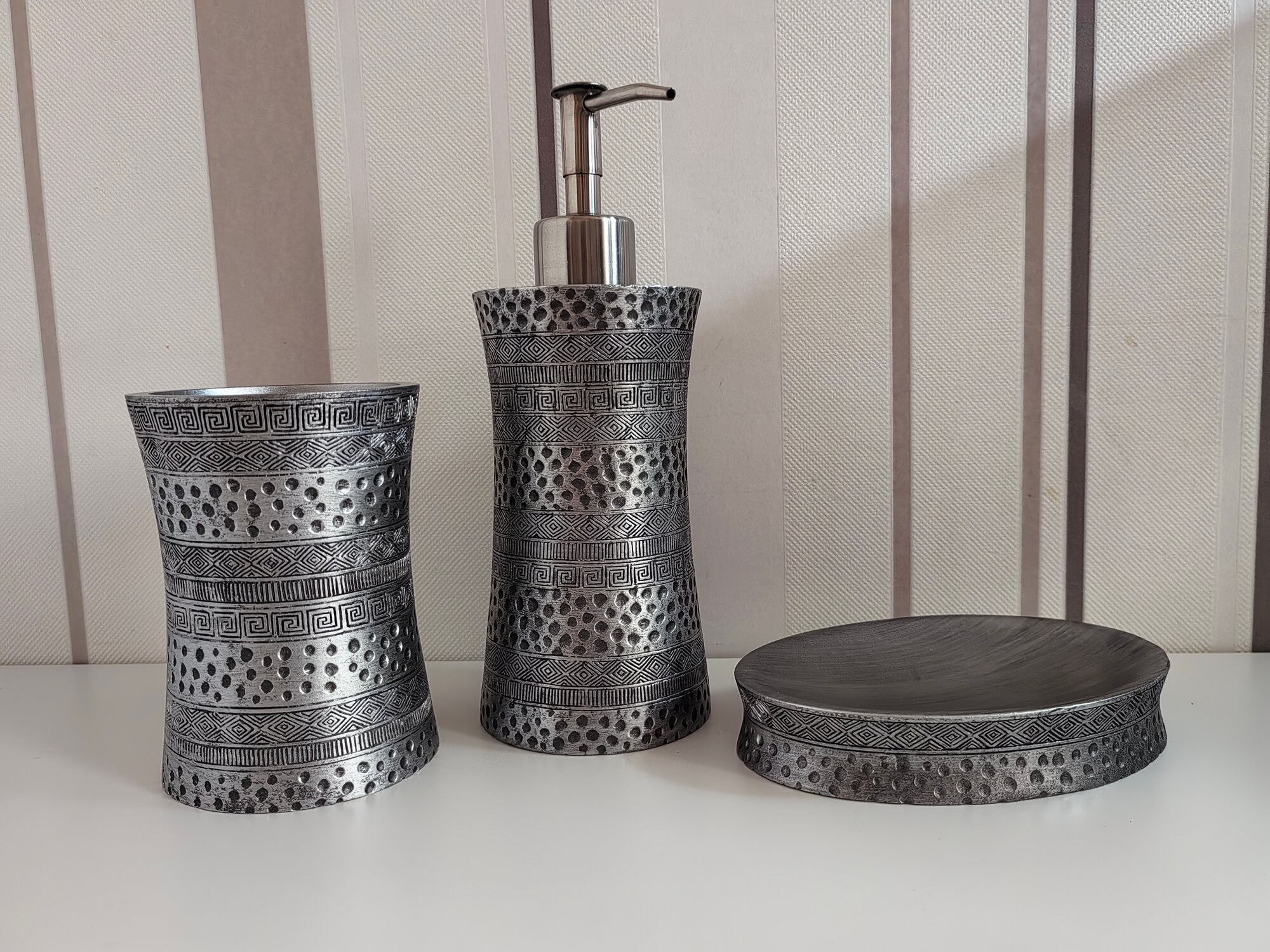 Рисунок коллекции Salm напоминает нам древние узоры. Вместе с этим они очень гармонично разместились на блестящей серебристой поверхности. Кажется, что нам досталось послание из прошлого, адаптированное под современность.