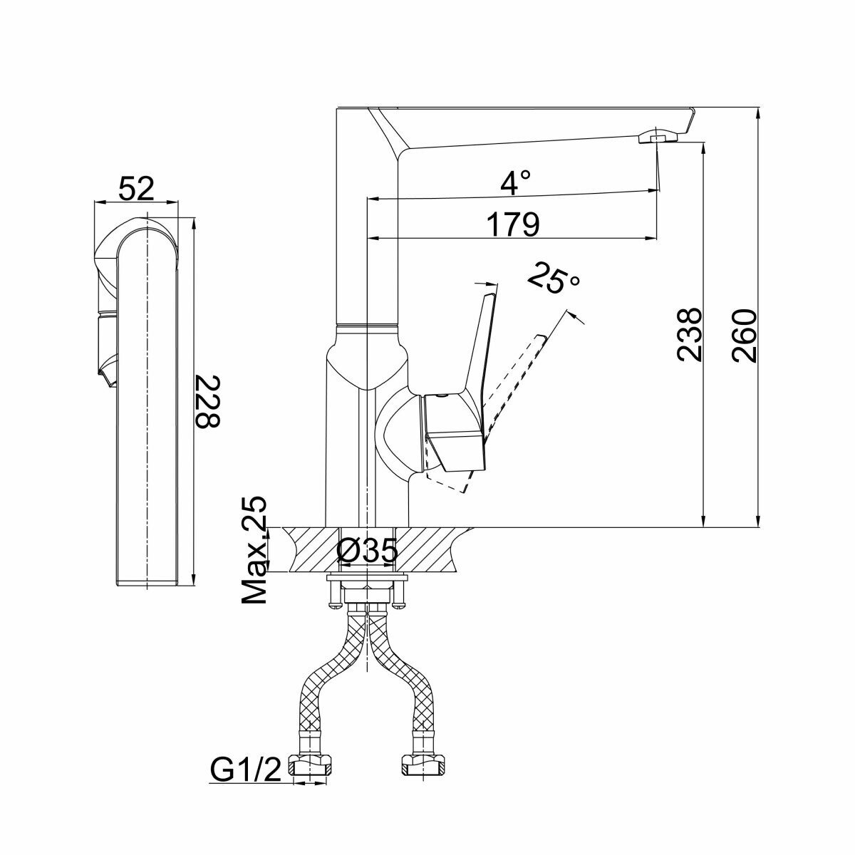 - Габариты, мм (Ш х В x Г): 52 х 260 x 228