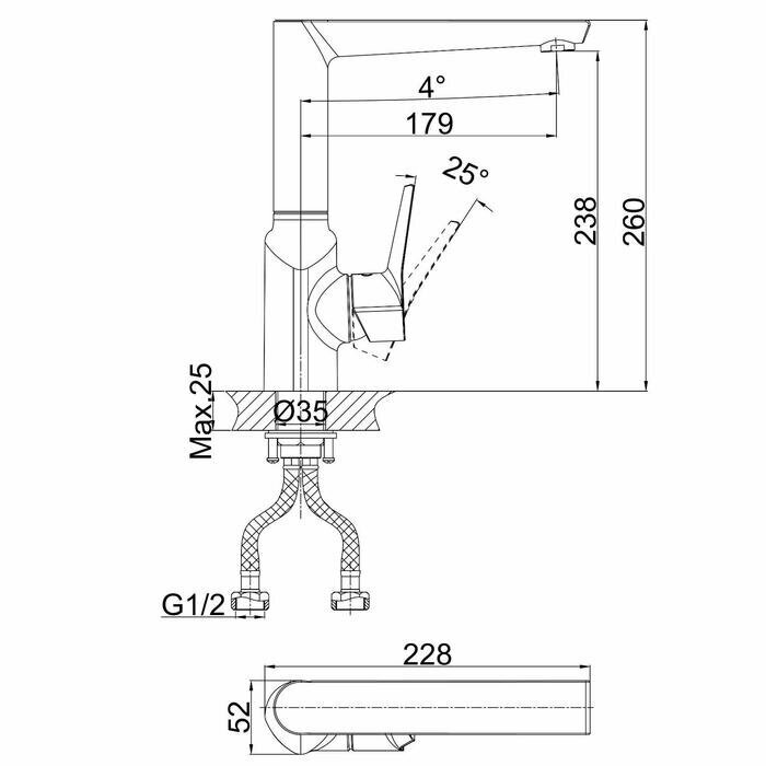 | ВКоробке | Смеситель - 1 шт. Комплект подводки - 1 шт. Набор креплений - 1 шт. Инструкция - 1 шт. |