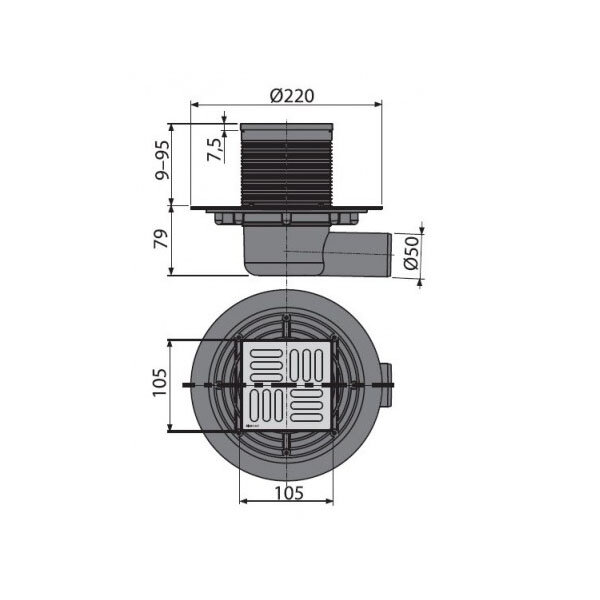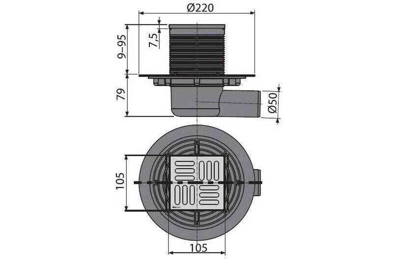 **Трап для душа Alcaplast** с перфорированной решеткой выполняет функцию отвода воды из поддона в канализацию в душевых с регулярным и нерегулярным водоотведением. Не допускает засоры, пропуск загрязняющих частиц, быстро чистится. Выпуск позволяет регулировать наклон слива. Пластиковый корпус фиксирует гидроизоляцию. В комплекте: трап в сборе, упаковка.