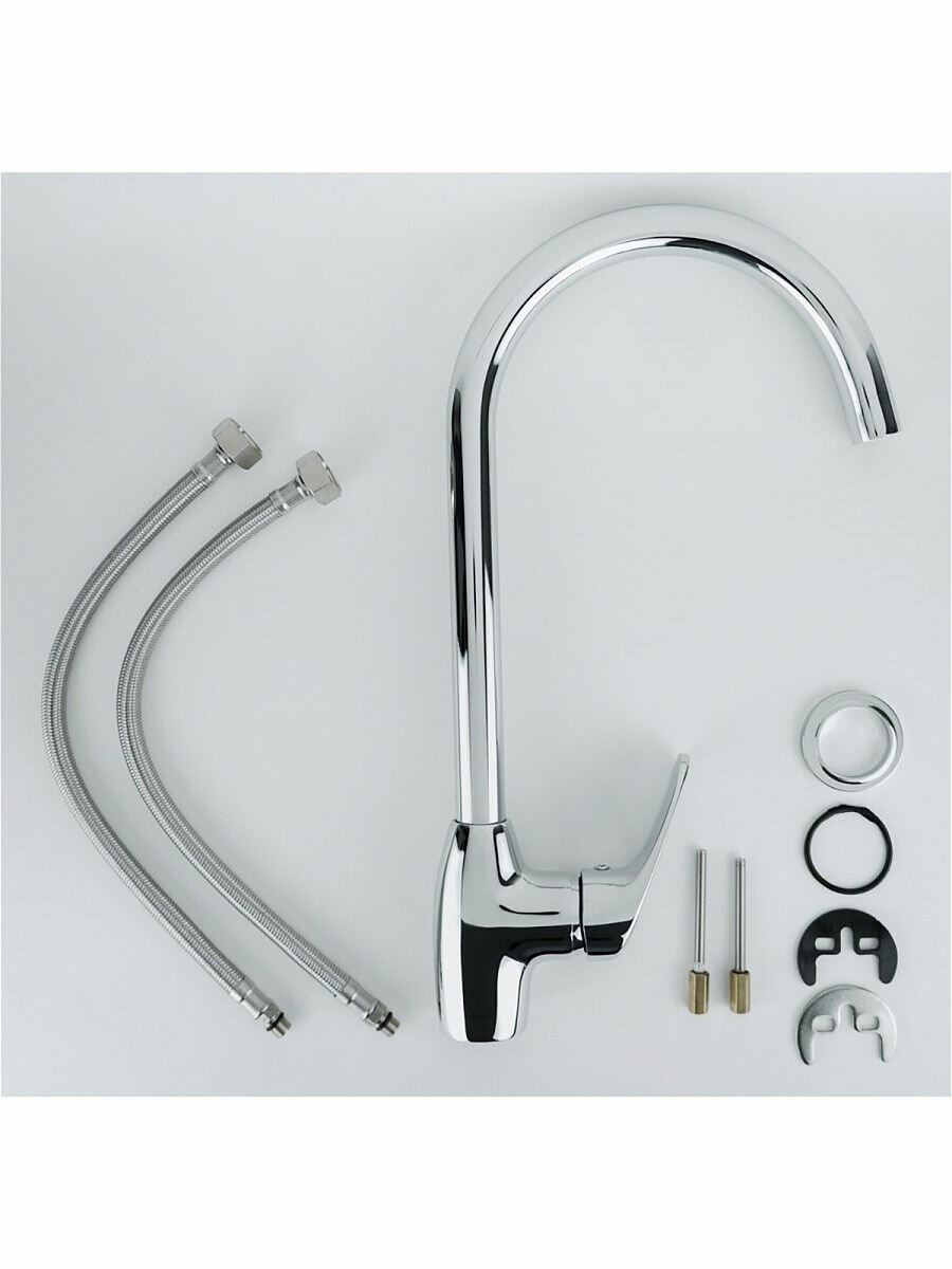 Коллекция однозахватная, картридж 35 мм, корпус литой, излив штампованный, гибкая подводка 35 см на 1/2, комплект креплений, ребро жесткости, аэратор пластиковый сменный (наружная резьба).