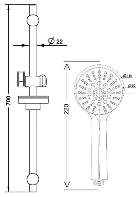 | В комплекте | держатель, штанга, душевой шланг, лейка ручная, крепления |