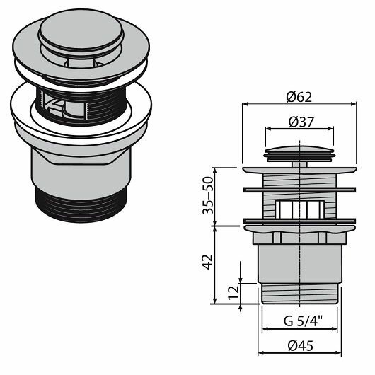 Донный клапан Alcaplast A39 click/clack 5/4, цельнометаллический с малой заглушкой.