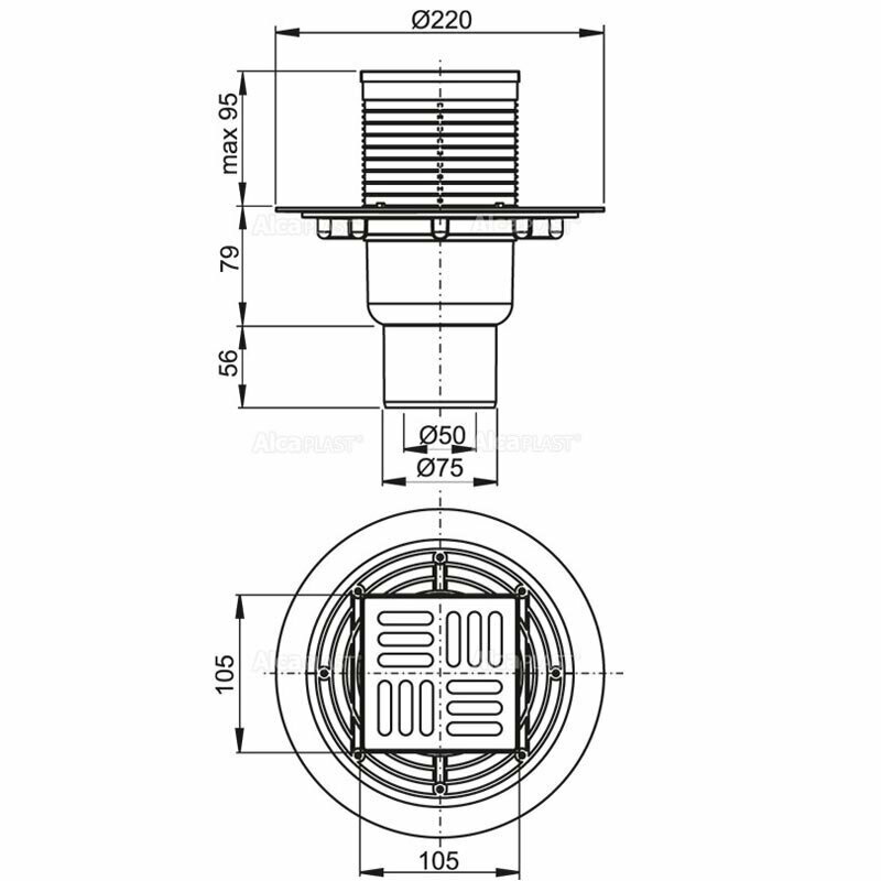 - Горловина сливного трапа 105х105 мм.