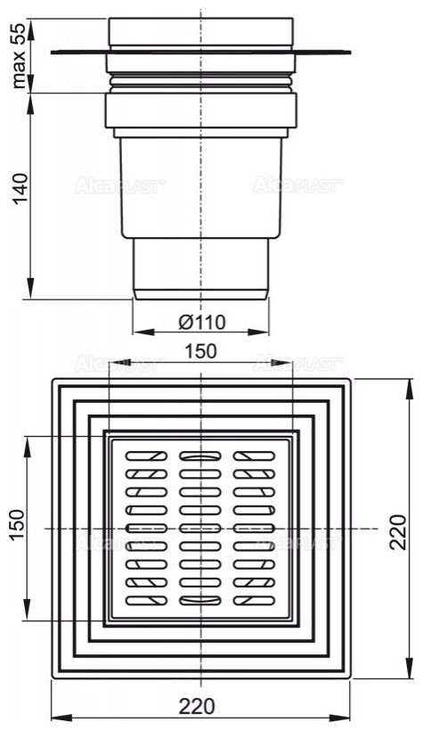 Сливной трап 150 150/110, подводка прямая, решетка серая, воротник 2-х уровневая изоляция, гидрозатвор мокрый. Объемный сливной трап. Пластиковая решетка 145x145x5 мм. Регулируемая по высоте горловина 3757 мм. Воротник с 2-х уровневой изоляцией для армирования стяжки под плиткой. Прямое подключение к канализационному стоку 110 мм. Мокрый гидрозатвор надежно защищает от проникновения запаха из канализации. Материал: полипропилен, устойчивый к механическим, химическим и термическим повреждениям