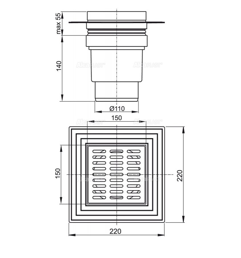 Трап для душа Alcaplast APV11 с решеткой