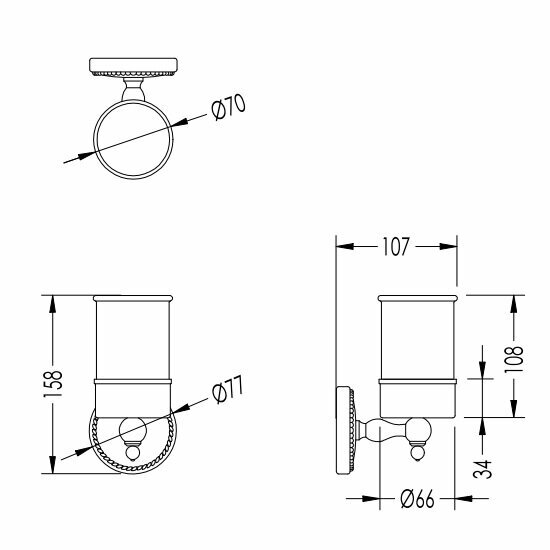 Devon&Devon предлагает безупречное, сочетание материалов (керамика, латунь) высокого качества, с полным отсутствием вредных для здоровья веществ. Белый, основной цвет исполнения Devon&Devon Dorothy, безупречно впишется в любой дизайн проект. Важные габариты изделия: ширина 7.7 см, глубина 10.7 см, высота 15.8 см. Круглая форма DOR403CR прослеживается во всех линиях и придает аксессуару неповторимый стиль. Стакан размещается в максимально удобном положении на стене благодаря подвесному способу установки.