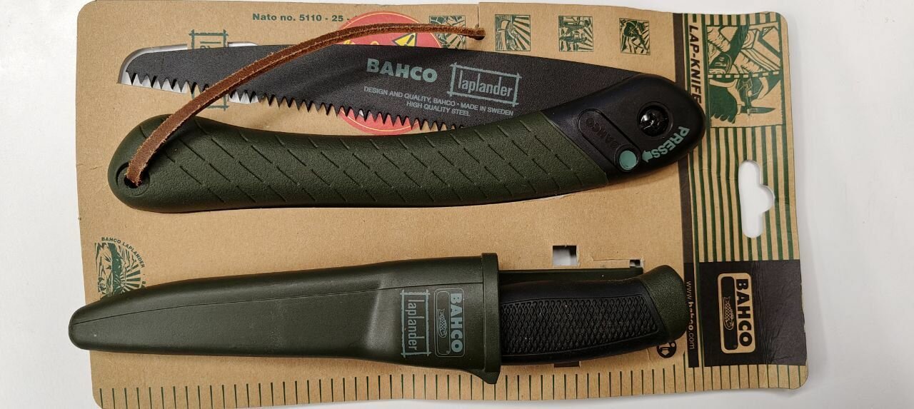 | Прочие особенности и свойства | Набор включает складную ножовку и нож Складная пила общего назначения для сырой и сухой древесины, пластмассы и т.п. Закаленные зубья ХТ, 7 зубьев на дюйм. Лезвие со специальным низкофрикционным антикоррозийным покрытием Удобная двухкомпонентная пластиковая рукоятка с кожаным ремешком Лезвие фиксируется как в раскрытом, так и в закрытом положении Крепкий нож с лезвием из нержавеющей стали для широкой сферы использования Удобная и безопасная двухкомпонентная рукоятка Поставляется в пластиковых ножнах с клипсой для ремня |