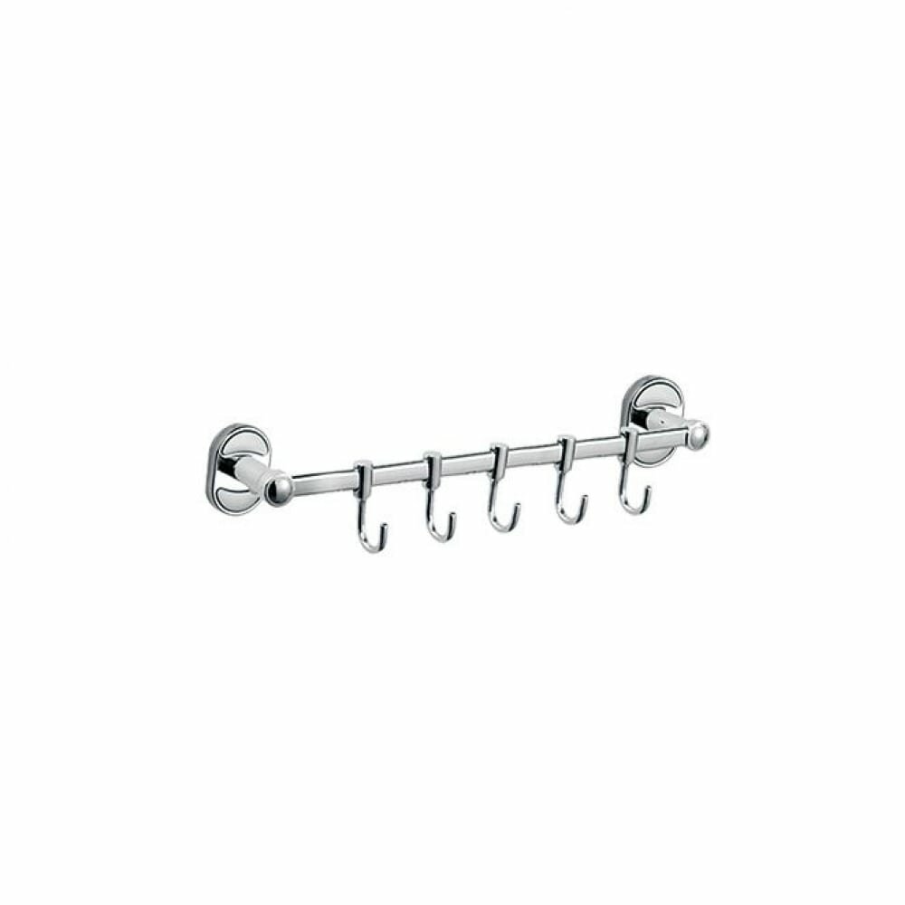 Держатель для банного полотенца с пятью крючками. Данный держатель изготовлен из металла, настенное. Цвет - хром. Крепится данный держатель с помощью дюбеля и шурупами. Длина составляет 38,5 см.