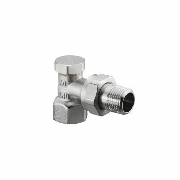 Вентиль на обратную подводку Oventrop Combi 2 1091062 1/2″ угловой для радиаторов предназначен для пропорциональной преднастройки расхода теплоносителя через отопительный прибор в системах центрального отопления (охлаждения). Вентиль монтируется на обратный трубопровод. В качестве рабочей средой может выступать вода и растворы гликолей до 50% с температурой от 2°C до 120°C и давлением до 10 бар, а также пар с температурой до 110°C и давлением до 0,5 бар.Корпус вентиля изготовлен из никелированной латуни. Дисковый клапан выполнен из латуни с кольцеобразным уплотнением из EPDM. Имеет латунный защитный колпачок с дополнительным мягким уплотнением. Вентиль имеет два патрубка с резьбовым соединением Rp 1/2″ ВР х G 1/2″ НР. Наличие полусгона позволяет монтировать и демонтировать клапан без демонтажа трубопровода.Условная пропускная способность клапана (kvs) 1,7 м3/час. Габариты вентиля (ДхШхВ) 72х33х50 мм, вес изделия составляет 220 г.