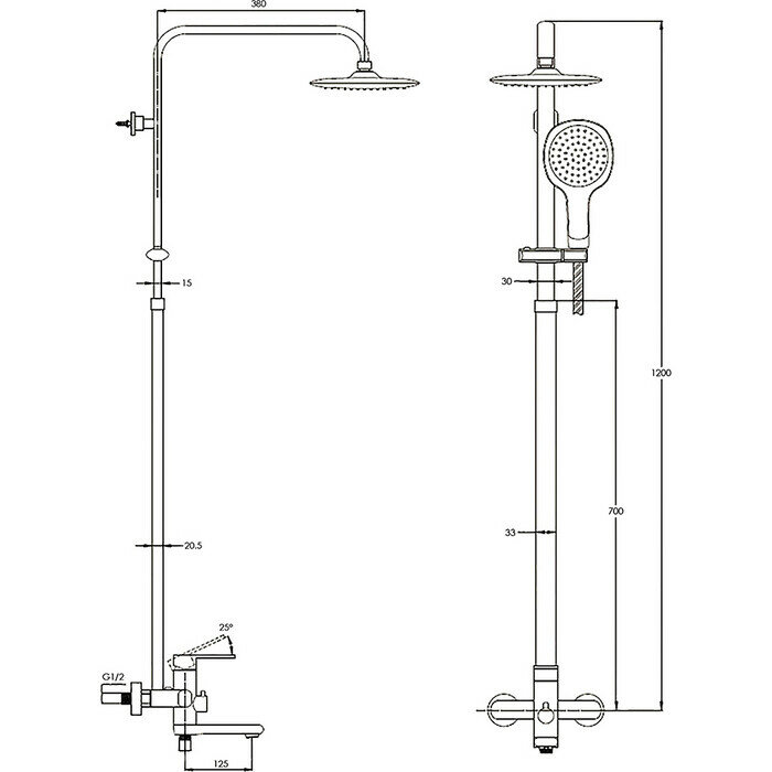 | Форма верхнего душа | квадратная |