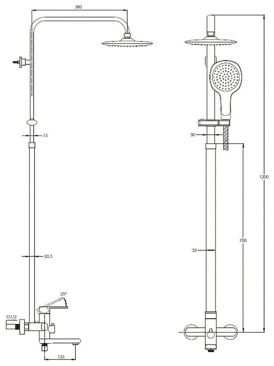 - Душевая лейка с регулируемым держателем и защитой от известковых отложений.