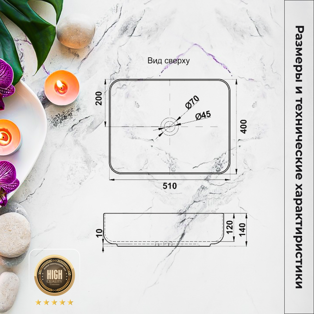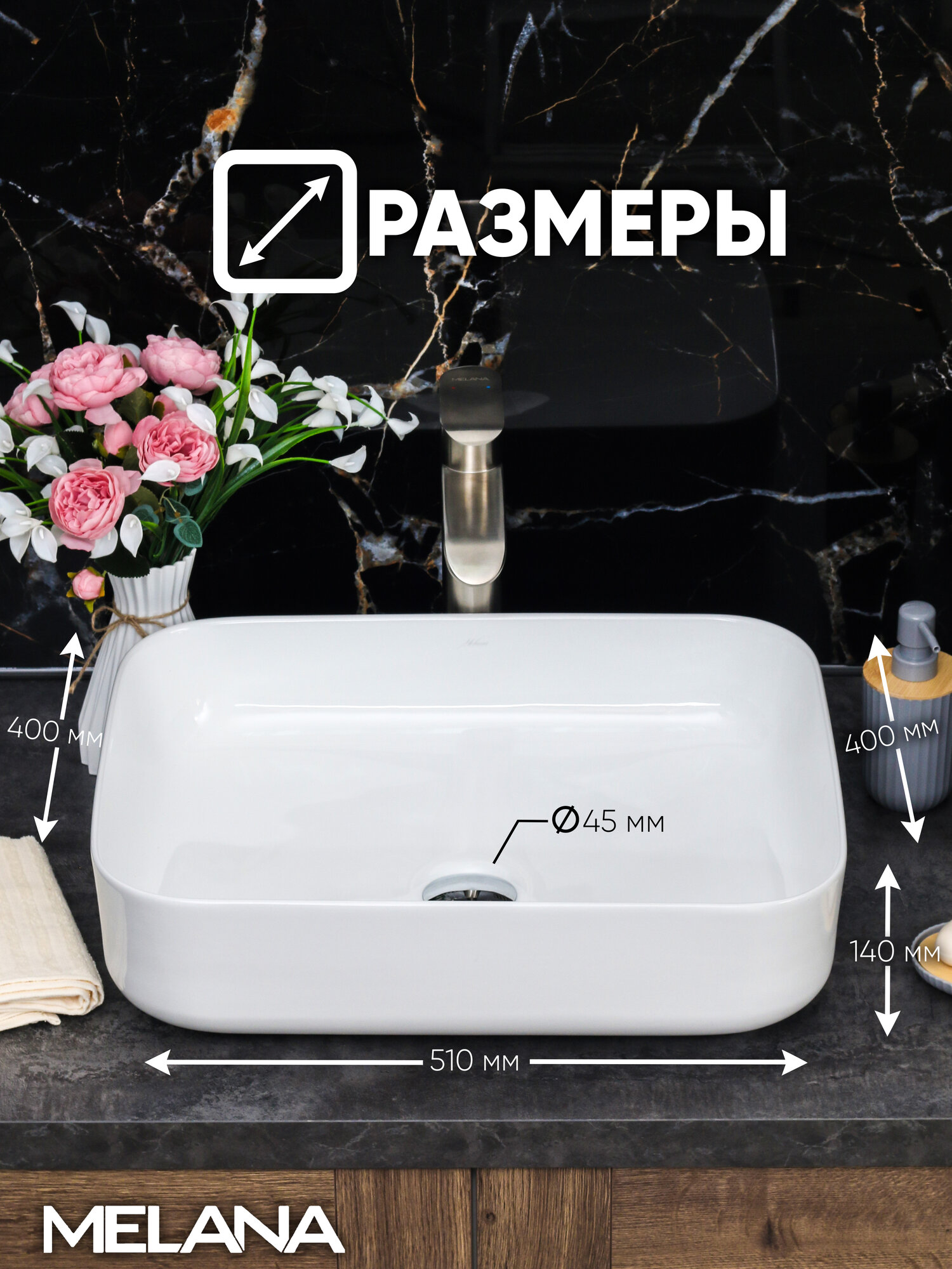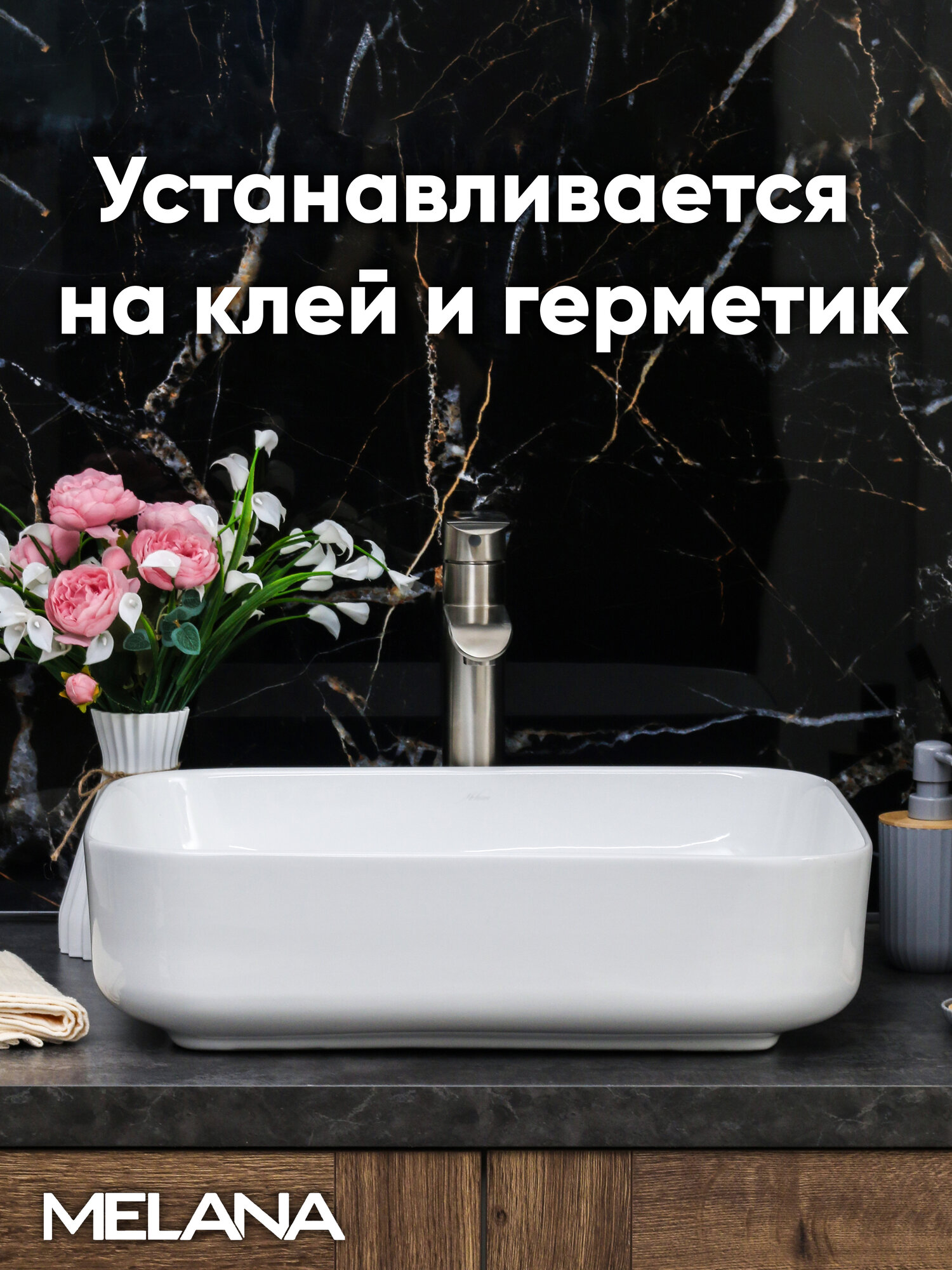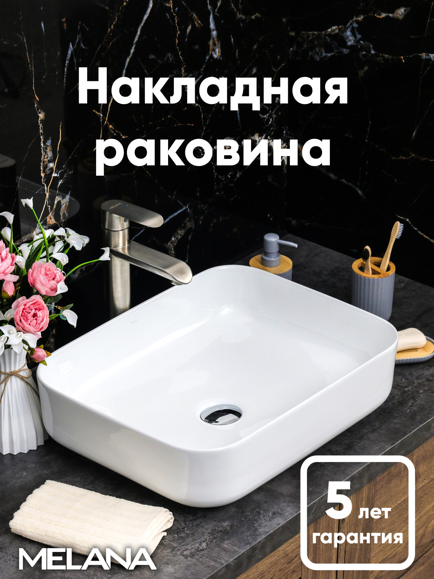Раковина Melana MLN-78109 накладная. Лаконичный и элегантный дизайн с плавными линиями дополнит интерьер санузла в различных стилях.