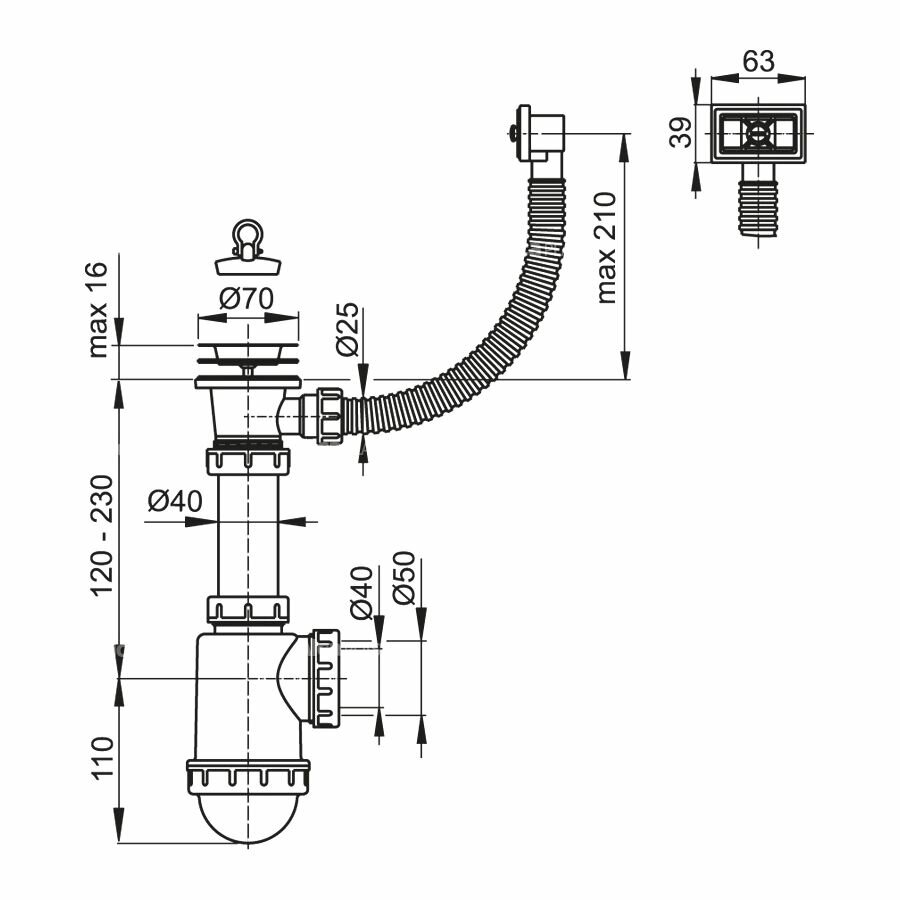 | Тип | сифон для кухонной мойки |