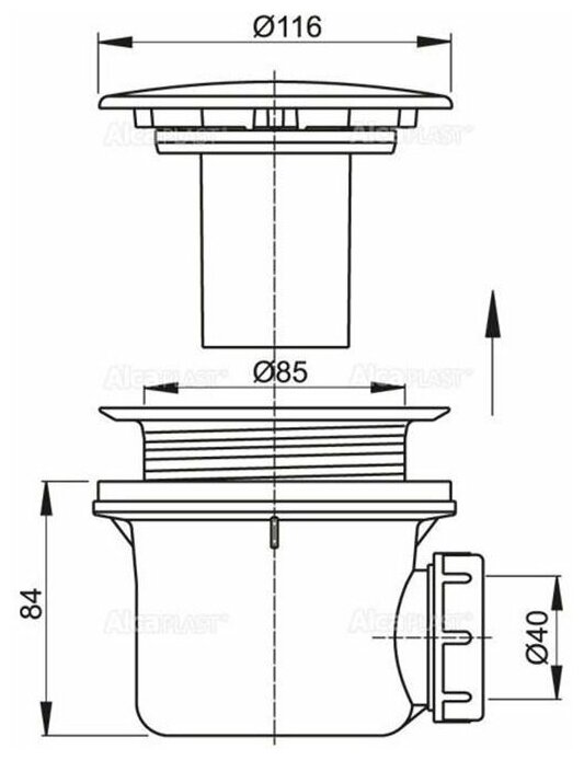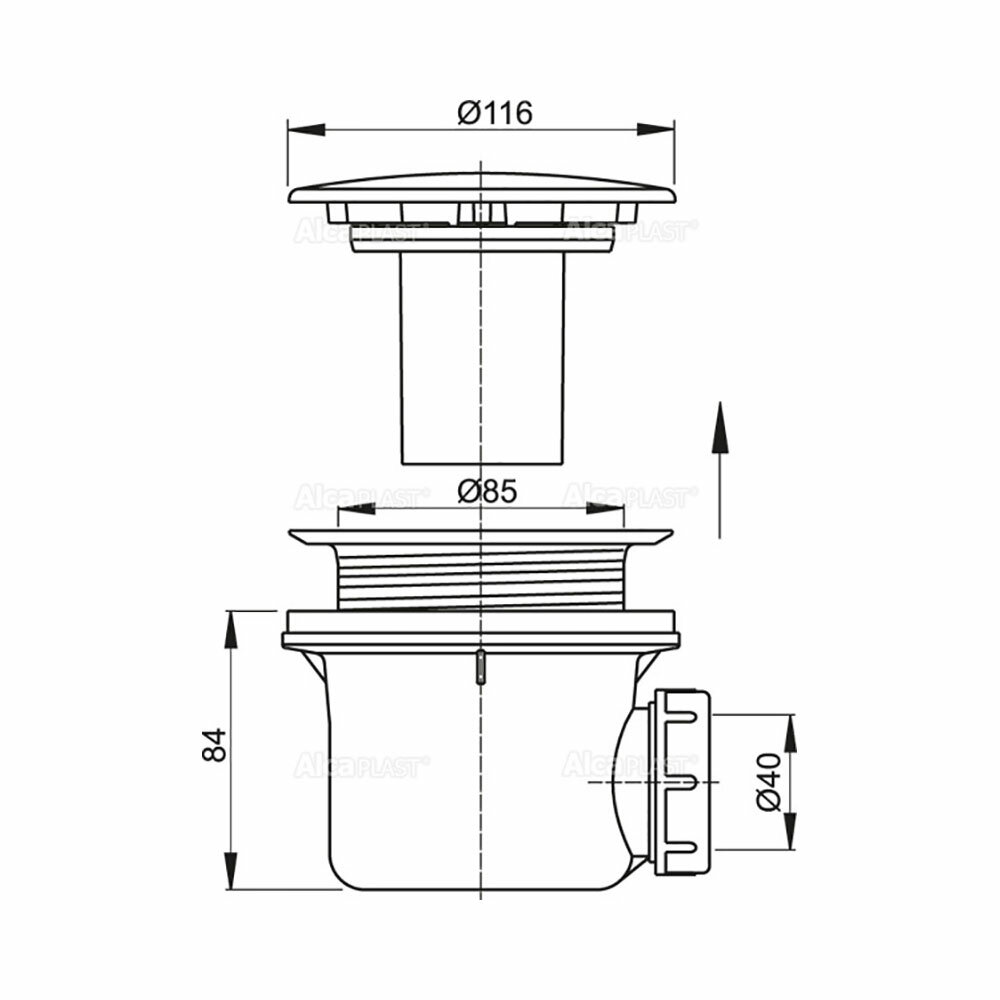 Сифон для душевого поддона Alcaplast A49B Белый (размер: 116x40 мм)