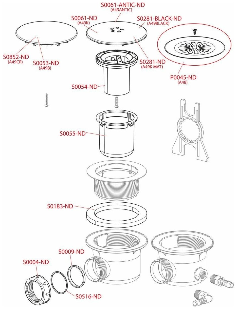 - Для душевых поддонов со сливным отверстием 90 мм.