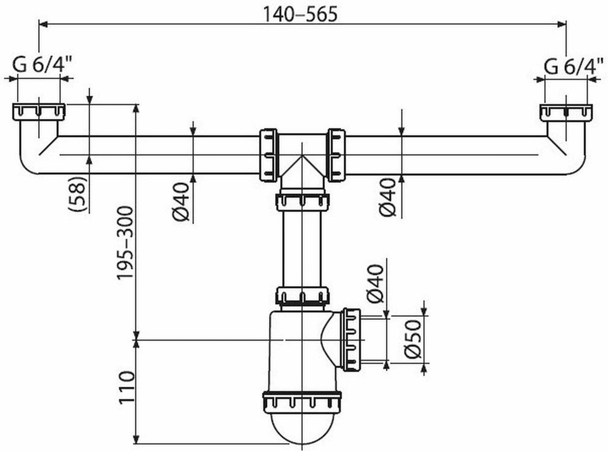 - Диаметр подключения: 1 1/2 дюйма, диаметр отвода: 40 мм, количество отводов: 1 шт
