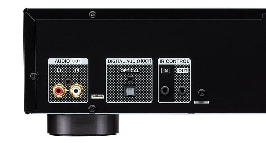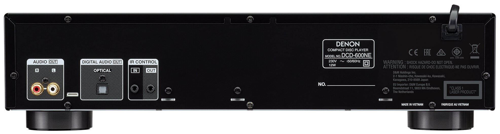 Проигрыватель оснащен оптическим выходом, с помощью которого его можно подключить к внешнему цифро-аналоговому преобразователю. Линейный выход в Denon DCD-600NE реализован на позолоченных разъемах RCA. Также данный аппарат имеет вход и выход для фирменной системы внешнего управления.