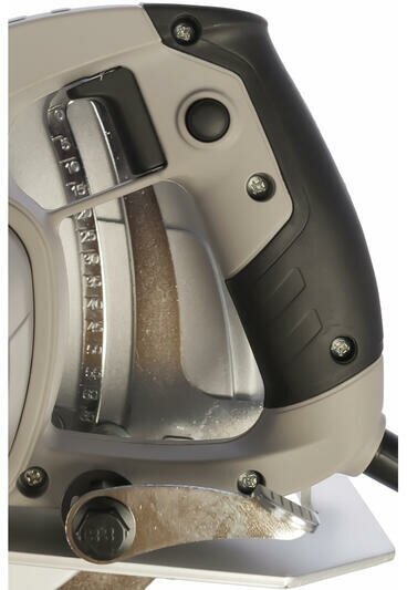 При необходимости проведения максимально точных распилов под углом до 45 градусов литая подошва регулируется небольшим рычагом. Универсальный диск из твердого сплава не оставляет на месте среза следов и разводов, что повышает качество работы и позволяет использовать пилу для изготовления офисной и домашней мебели.