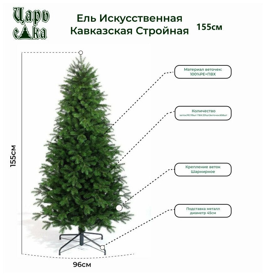Ель искусственная Кавказская стройная зеленая 155 см Царь Елка