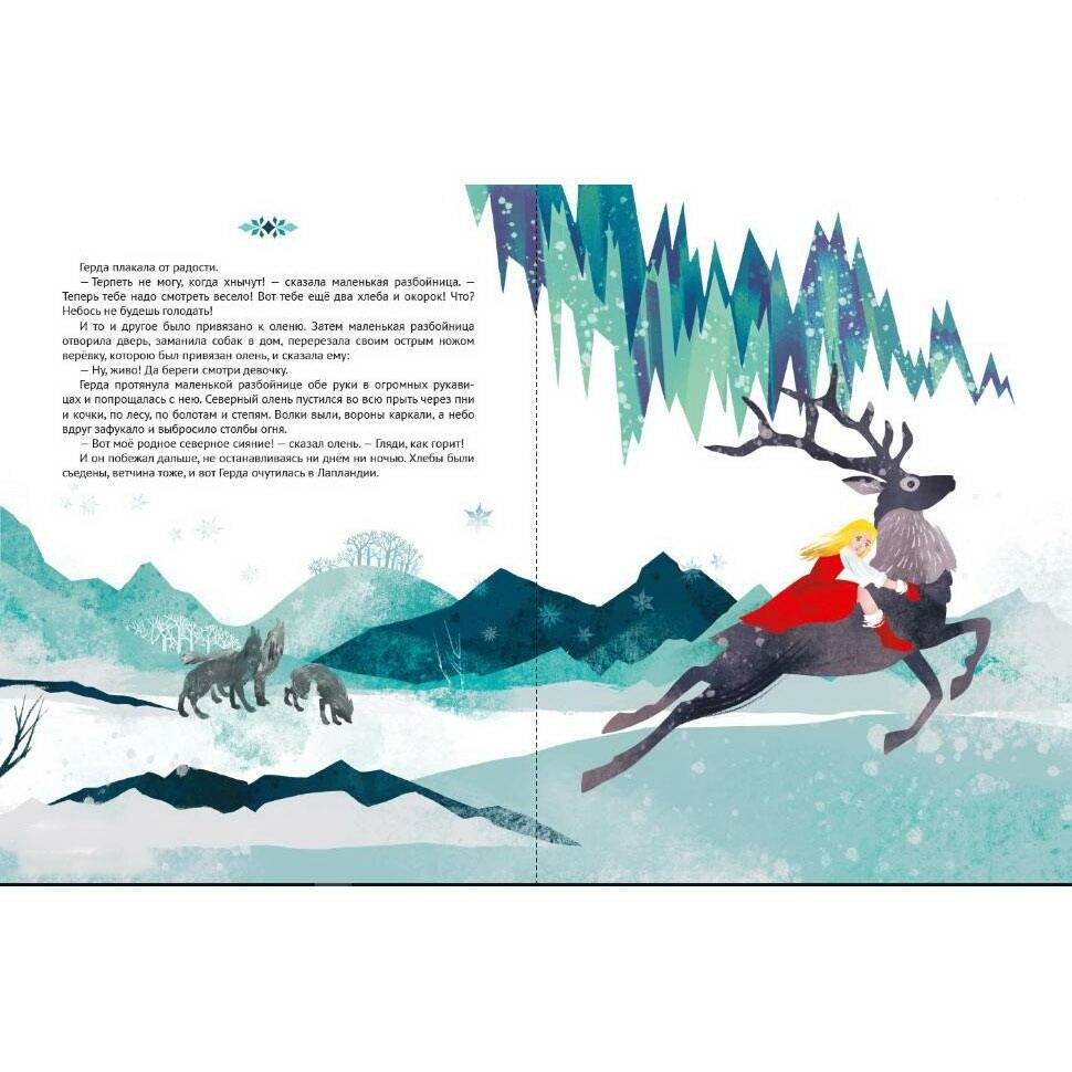 Подарочное издание любимой всеми «Снежной королевы». Страницы плотные, бумага хорошая, печать качественная и яркая. Формат чуточку больше стандартного а4. Главная фишка книги - это иллюстрации. Они действительно современные! Не видела ещё таких картинок к этой сказке. Все они очень нежные, цвета приятные. Одно удовольствие держать книгу в руках, читать знакомую сказку и рассматривать картинки! Всем советую. Отличное решение, если ищете книжку в подарок.