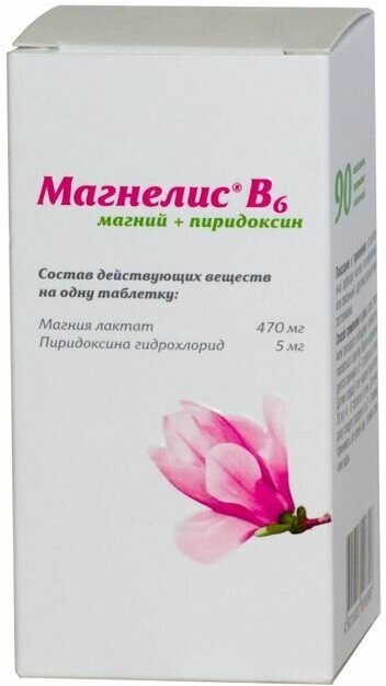 Препарат, восполняющий дефицит магния.Магний является жизненно важным элементом, который находится во всех тканях организма и необходим для нормального функционирования клеток. Участвует в большинстве реакций обмена веществ, в регуляции передачи нервных импульсов и в сокращении мышц, оказывает спазмолитическое, антиаритмическое и антиагрегантное действие.Организм получает магний вместе с пищей. Недостаток магния в организме может наблюдаться при нарушении режима питания (диета) или при увеличении потребности в магнии (при повышенной физической и умственной нагрузке, стрессе, беременности, применении диуретиков).Пиридоксин (витамин В6) участвует во многих метаболических процессах, в регуляции метаболизма нервной системы. Улучшает всасывание магния из ЖКТ и его проникновение в клетки.Содержание магния в сыворотке от 12 до 17 мг/л (0.5-0.7 ммоль/л) свидетельствует об умеренной недостаточности магния; ниже 12 мг/л (0.5 ммоль/л) - о тяжелом дефиците магния.