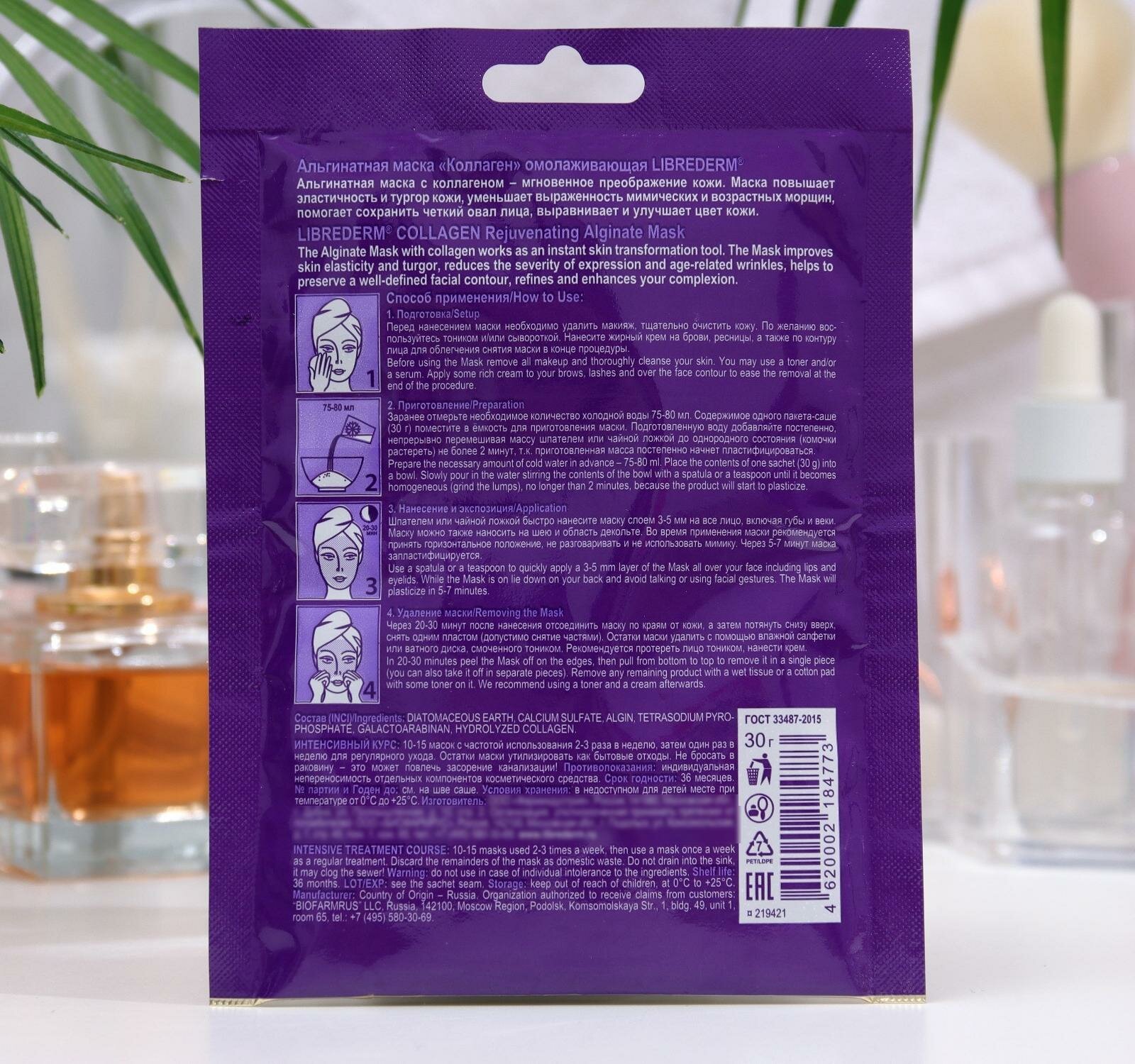 Маска Librederm (Либридерм) альгинатная омолаживающая Коллаген 30 г 1 саше ООО "КБ Механика" RU (571013)