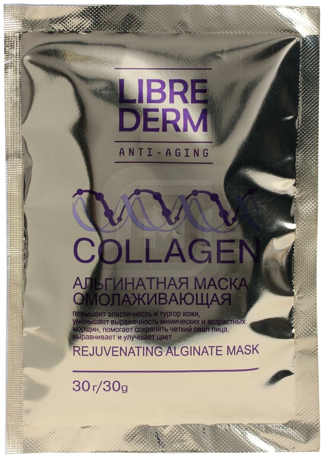 Либридерм Коллаген Маска Альгинатная омолаживающая для всех типов кожи.Содержание альгинатов позволяет маске при застывании «зафиксировать» контуры лица. Либридерм Коллаген Маска Альгинатная создает на поверхности кожи водо- и воздухонепроницаемую пленку, в результате чего оказывает мощный увлажняющий и подтягивающий эффект, улучшает тон кожи, разглаживает морщины. После применения маски восстанавливается водный баланс, сужаются поры, повышается тургор и эластичность кожи. Активные компоненты Librederm Anti-Aging Line Collagen Rejuvenating Alginate Mask оказывают детоксицирующий эффект, дарят коже сияние, насыщают ее витаминами и минеральными элементами. Кожа выглядит моложе, овал лица восстанавливается, уходит отечность и тусклый цвет лица.