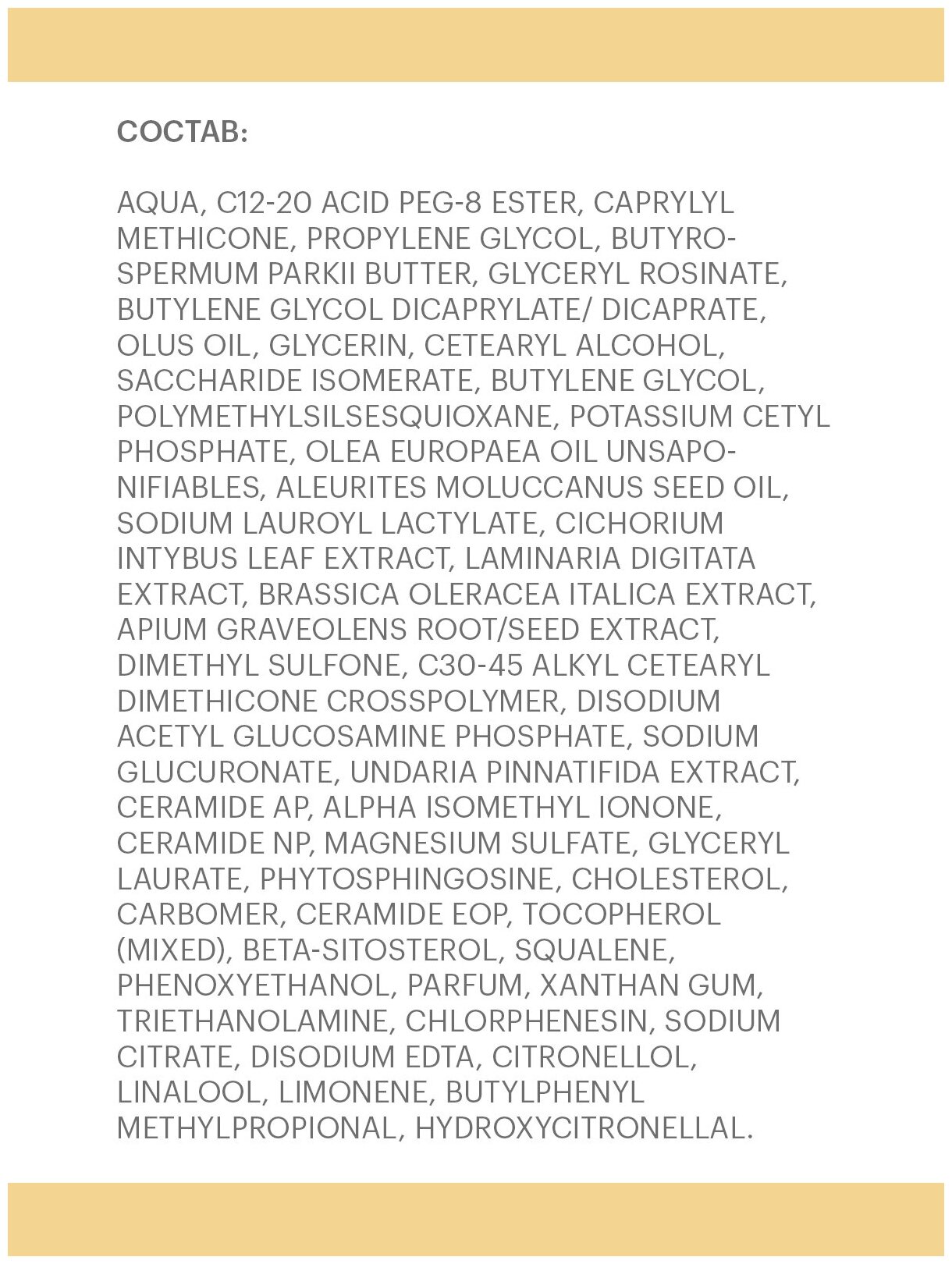 | Состав | AQUA, CAMELINA SATIVA OIL, CETEARYL OCTANOATE, CAPRYLIC/CAPRIC TRIGLYCERIDE, DIMETHICONE, ISOPROPYL MYRISTATE, SODIUM POLYACRYLATE, MINERAL OIL, PHENOXYETHANOL, SODIUM HYALURONATE, CYCLOPENTASILOXANE, TRIDECETH-6, PEG/PPG-18/18 DIMETHICONE, ETHYLHEXYLGLYCERIN, TOCOPHEROL (MIXED), BETA-SITOSTEROL, SQUALENE, GLYCERYL LINOLENATE |