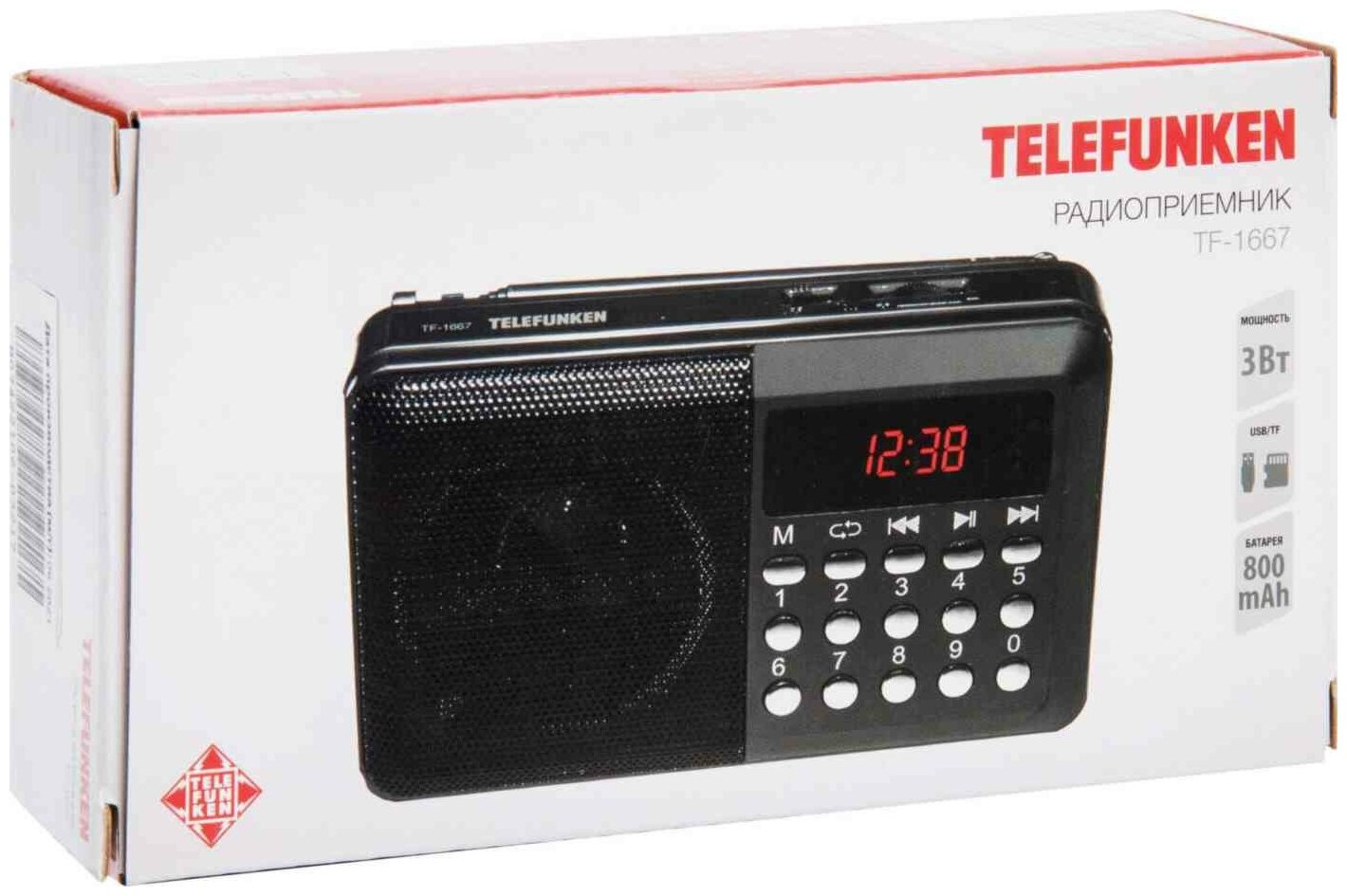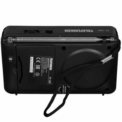 Портативный радиоприемник Telefunken черного цвета оснащен телескопической антенной, что обеспечивает качественный прием сигнала.