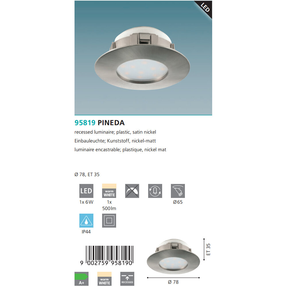 Встраиваемый светодиодный светильник Eglo Pineda Pineda 95819
