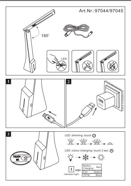 | Дополнительные характеристики | сенсорный диммер; питание от аккумулятора или батареек |