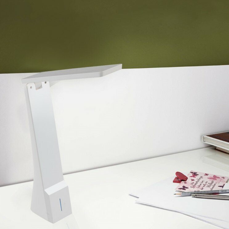 Интерьерная настольная лампа - продукт известной компании Eglo (Австрия). Имеет максимальную мощность 1.2 Вт. Отлично подойдет для таких мест, как кабинет, офис. Впишется в интерьеры следующих стилей: хай-тек, техно, минимализм.