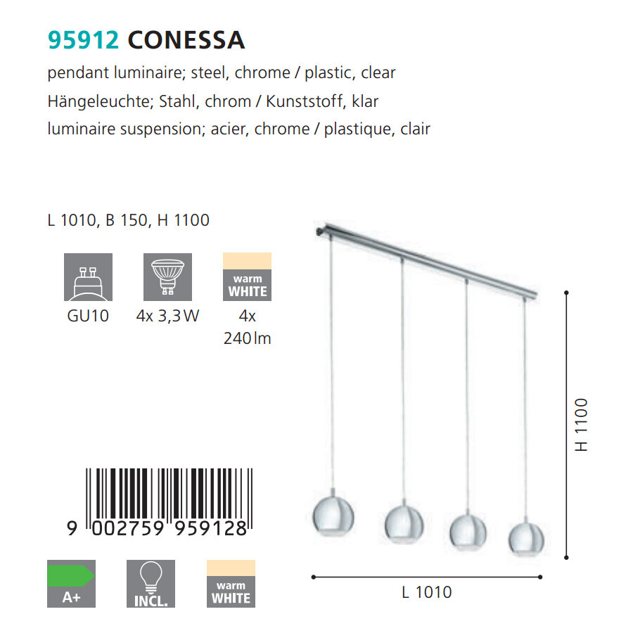 На сегодняшний день товар «Подвесной светильник Eglo Conessa Conessa 95912» можно купить с кешбеком в 1 магазине: Яндекс.Маркет