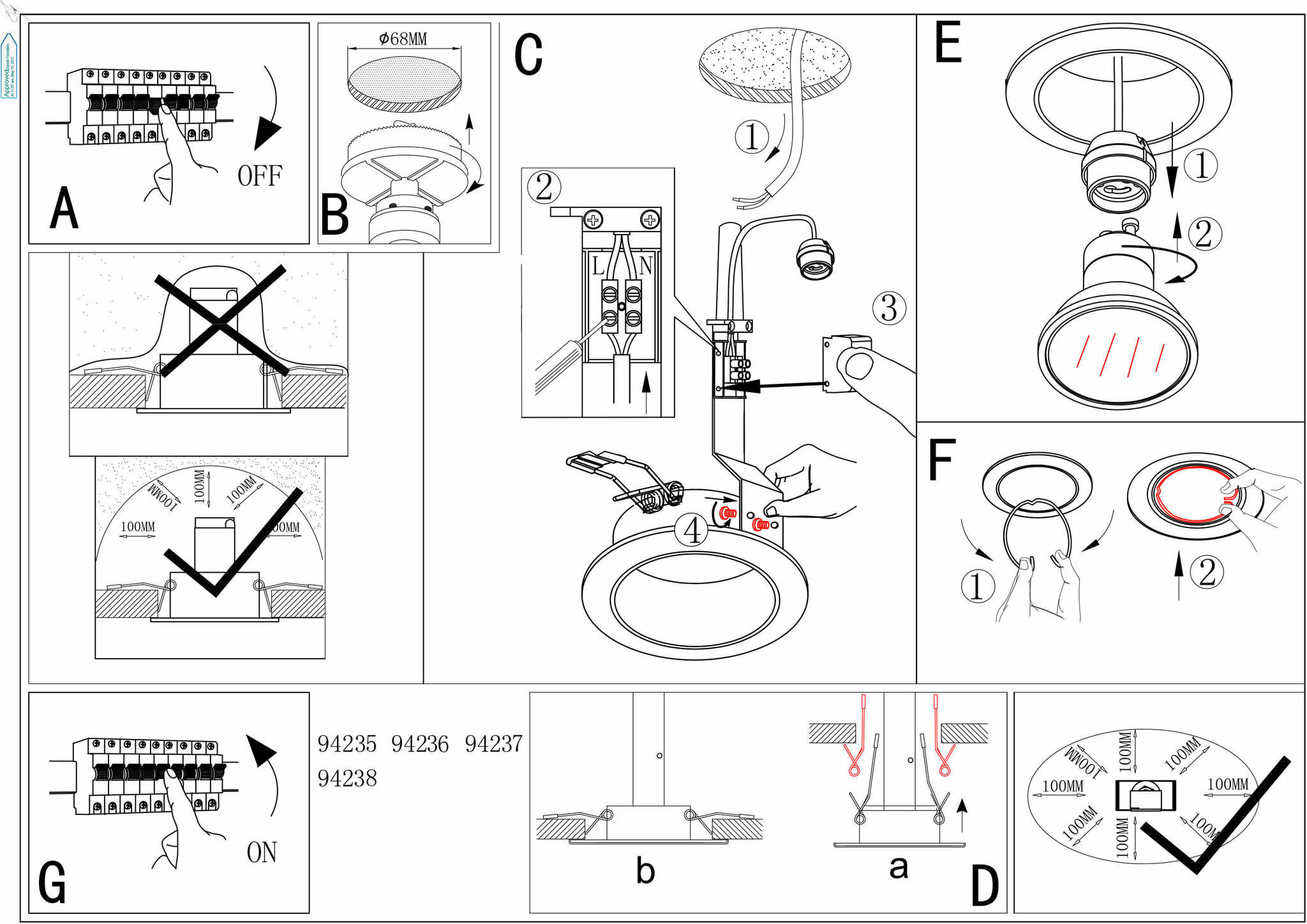 | Монтажное отверстие, диам | 68 |