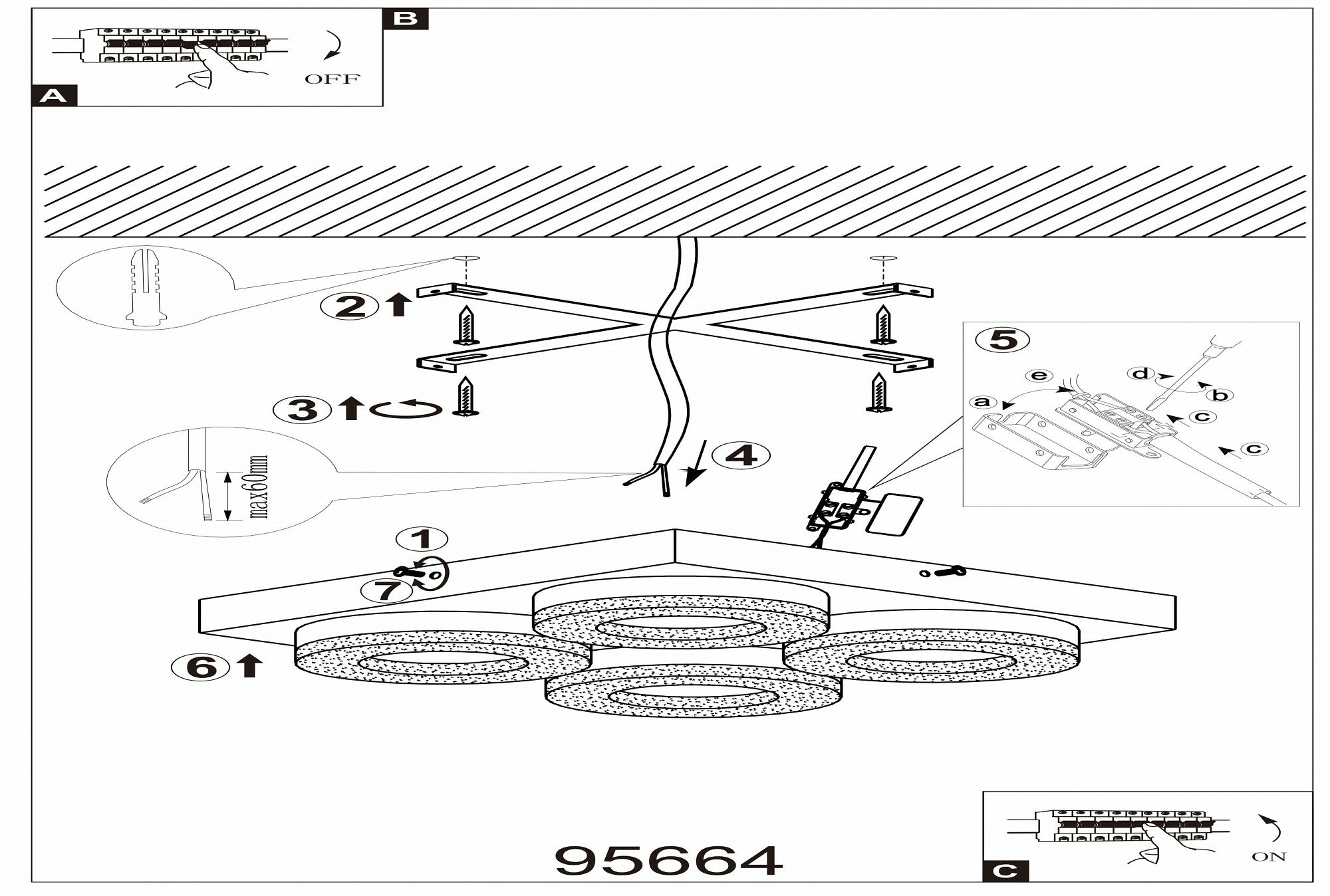 | Место установки | На потолок |