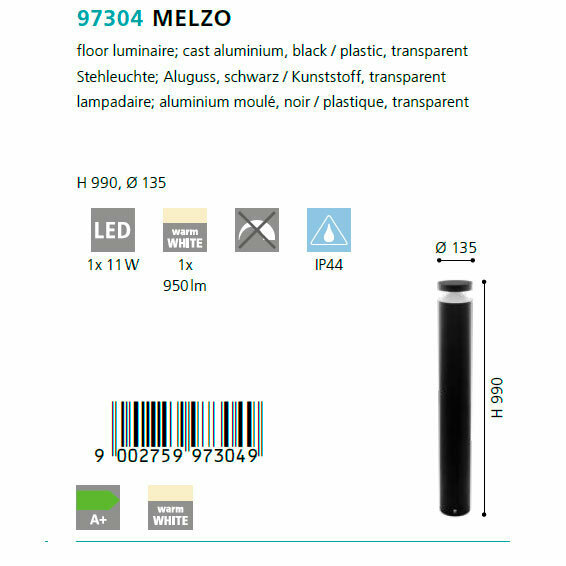 - Парковий світильник Eglo 97304 Melzo, 11 Вт, 950 лм, warm white
