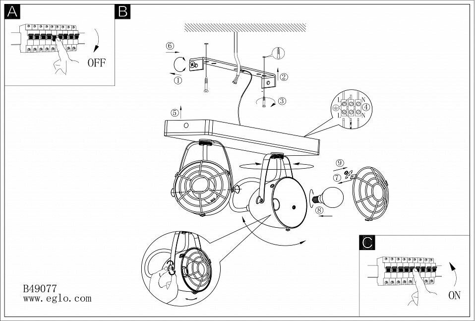 Спот - продукт известной компании Eglo (Австрия). Имеет максимальную мощность 80 Вт, освещает площадь до 4 кв. м. Отлично подойдет для таких мест, как гостиная, кафе, кухня, офис, магазин. Впишется в интерьеры следующих стилей: лофт.