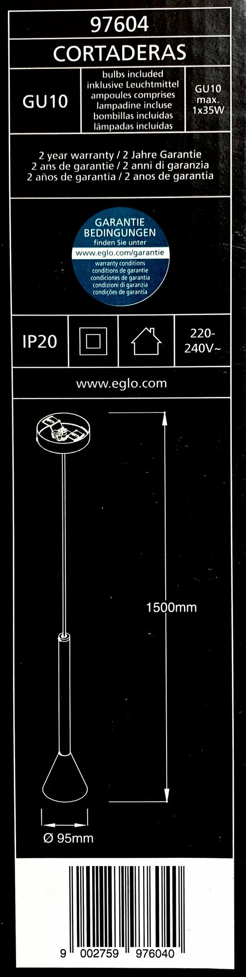 - Подвесной чёрный одиночный светильник Eglo CORTADERAS 97604