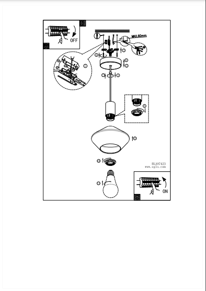 Допустимая мощность ламп, Вт | 60 |