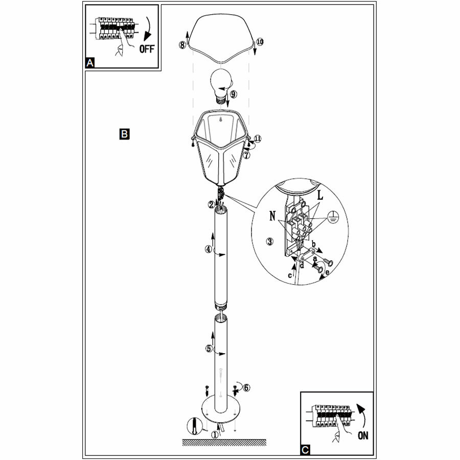 Наземный фонарь - продукт известной компании Eglo (Австрия). Имеет максимальную мощность 60 Вт, освещает площадь до 3 кв. м. Отлично подойдет для таких мест, как дача, сад. Впишется в интерьеры следующих стилей: классический.