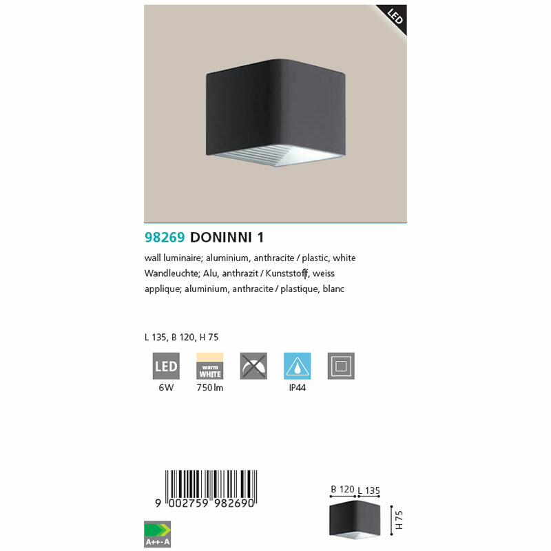На сегодняшний день товар «Уличный настенный светильник DONINNI Eglo Doninni 1 98269» можно купить с кешбеком в 3 магазинах: Santehnika-room, donplafon, Яндекс.Маркет