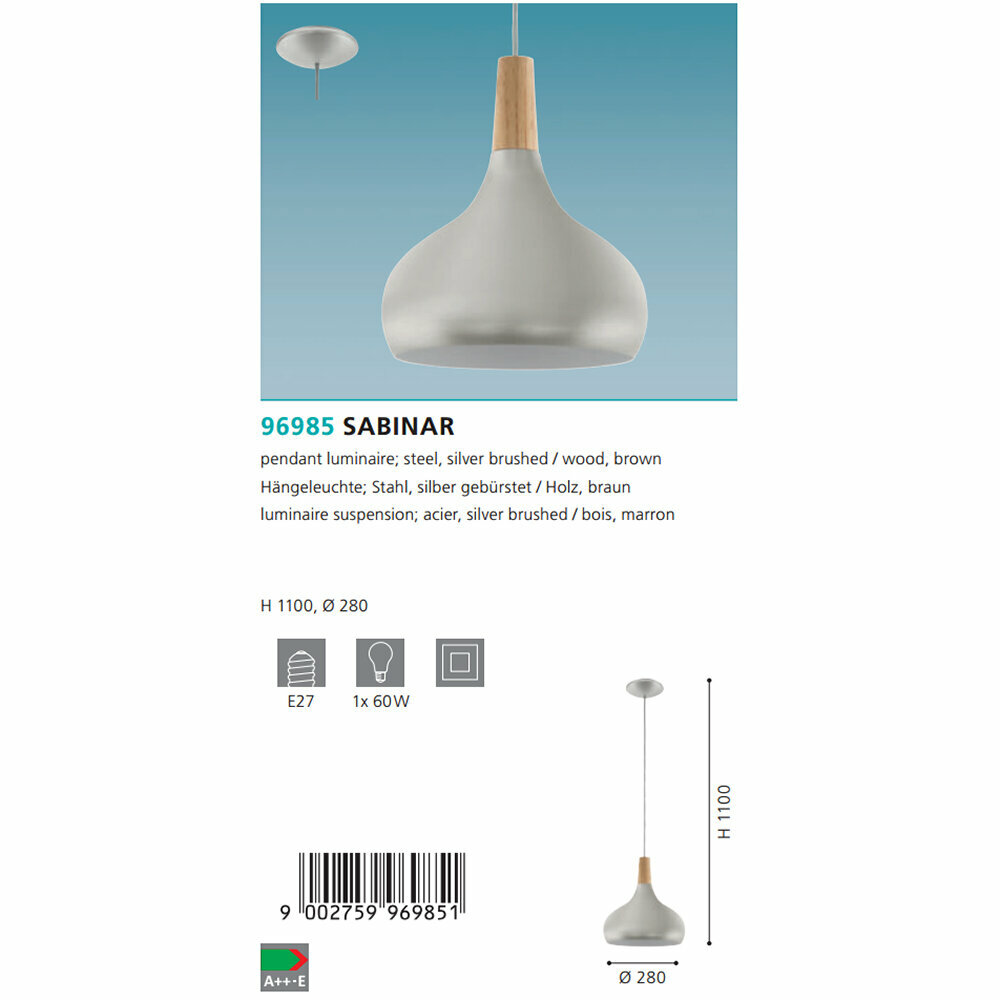 Люстра Eglo Sabinar 96985 обзор: светильник Eglo Sabinar 96985 60 Вт, где купить, характеристики