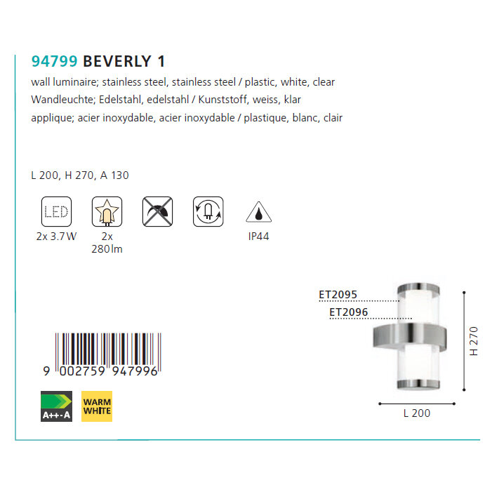 На сегодняшний день товар «Уличный настенный светильник Beverly Eglo Beverly 1 94799» можно купить с кешбеком в 1 магазине: Яндекс.Маркет