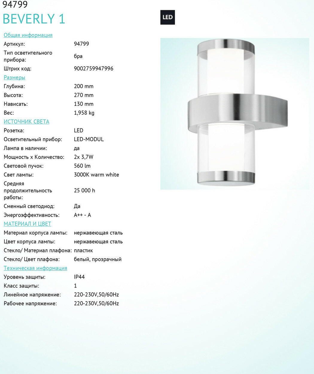 | Производитель | Eglo |