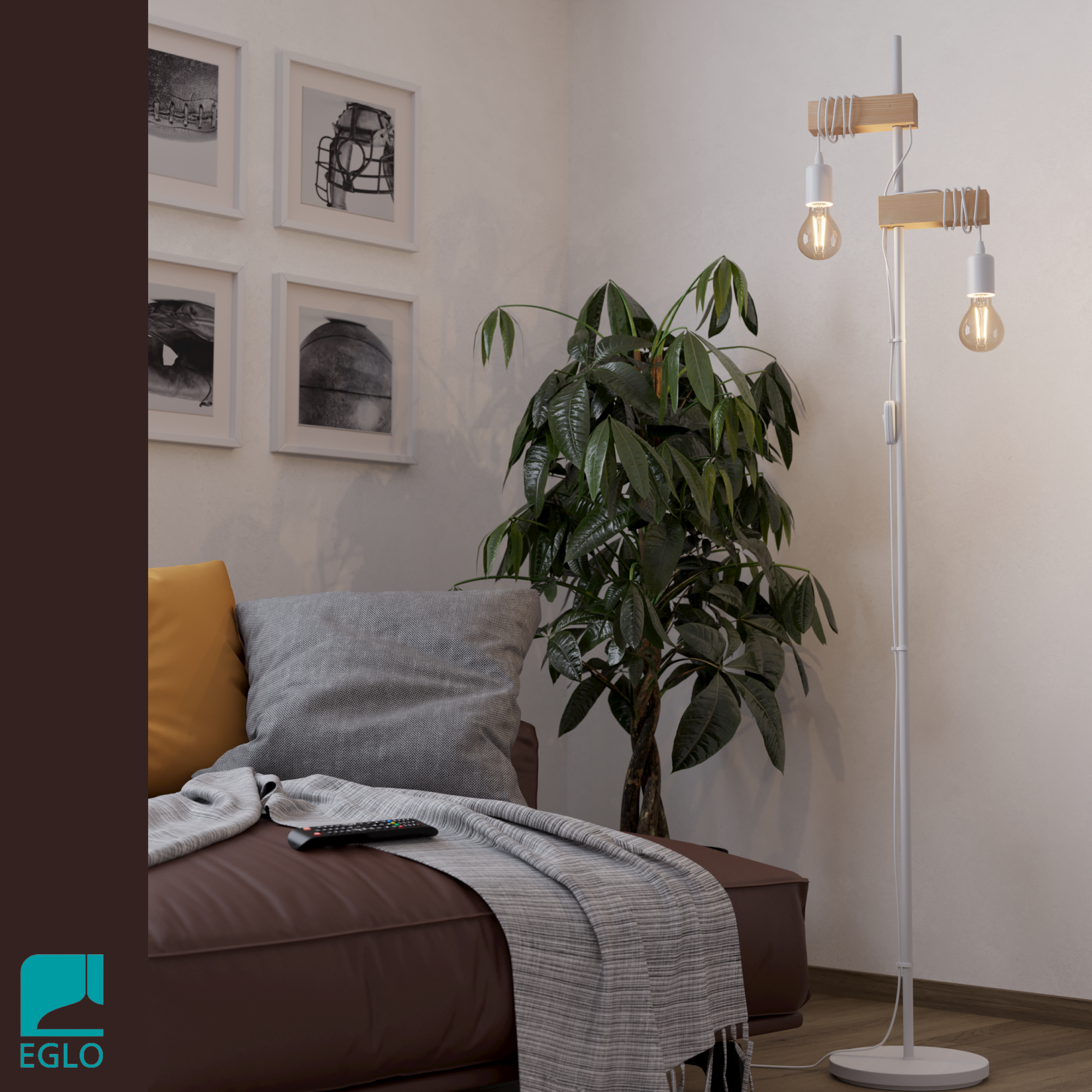 Торшер из коллекции ''Townshend'' от австрийской компании ''Eglo'' представляет собой эффектное сочетание стиля, индивидуальности и оригинальности дизайна. Если Вы хотите приобрести не только осветительный прибор, но и интересное украшение для Вашего интерьера, то данный торшер - отличный вариант. Выполнен из таких качественных материалов, как сталь и натуральное дерево - дуб. Цвет основания - белый. Подходит для размещения в гостиной, кабинете или спальне. Оснащен кабельным выключателем. Цоколь Е27. Имеет два источника света общей мощностью 20 Вт, которые приобретается отдельно.