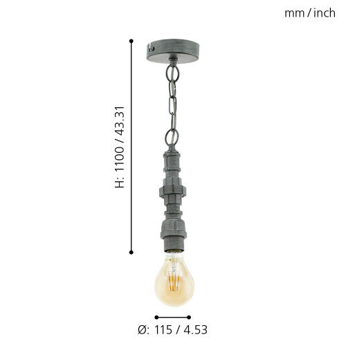Подвесной светильник - продукт известной компании Eglo (Австрия). Имеет максимальную мощность 60 Вт, освещает площадь до 3 кв. м. Отлично подойдет для таких мест, как кафе, кухня, над кухонным островом, офис. Впишется в интерьеры следующих стилей: лофт, индустриальный.