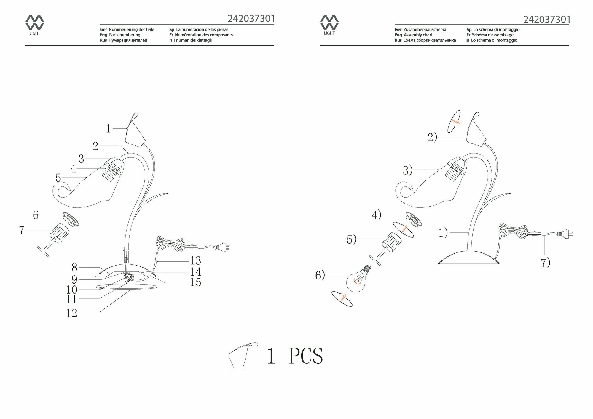 | Общее количество ламп | 1 |