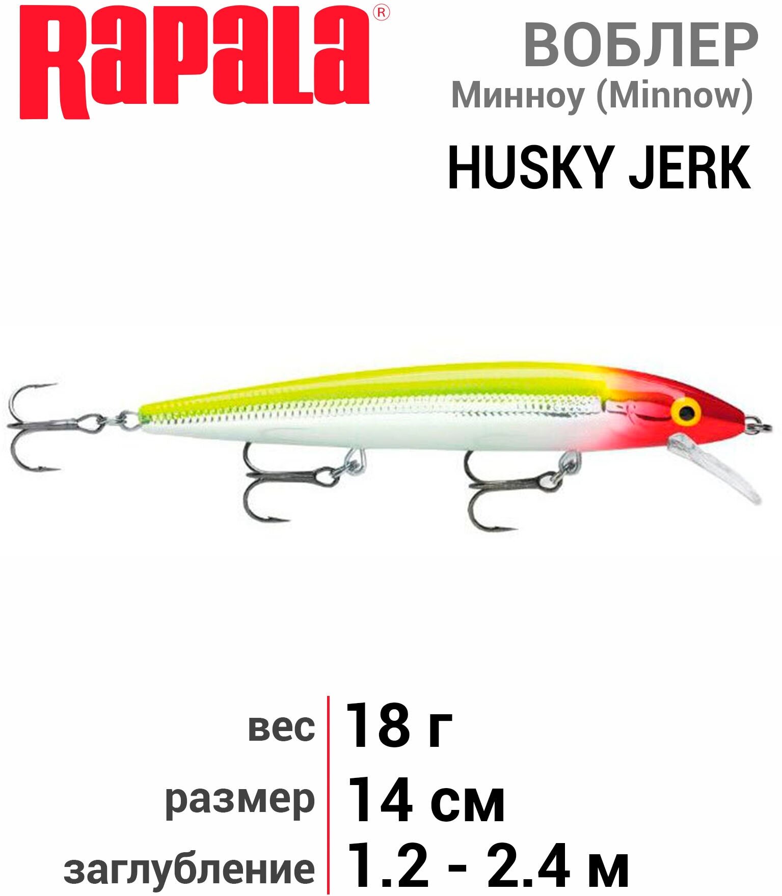 Воблер суспендер Rapala Husky Jerk HJ14-CLN (12м-24м 14 см 18 гр)