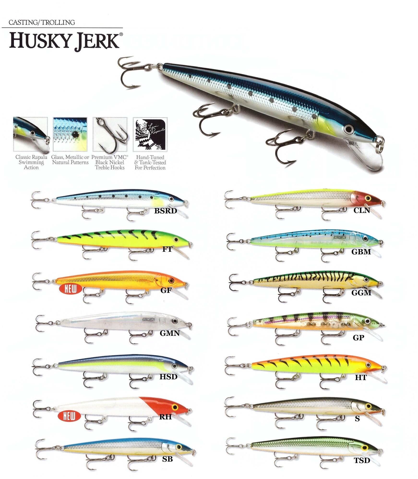Husky Jerk – благодаря своим неподражаемым движениям и нейтральной плавучести, этот воблер является несомненным шедевром. При движении он издает звуковые колебания, чем способен привлечь даже неактивную рыбу. На паузе эта приманка стремится остаться в толще воды, соблазняя хищную рыбу. Великолепная приманка, особенно для водной среды с большим количеством стай мальков. Известный трюк с Husky Jerk - это введение воблера в косяк мелкой рыбы и игра с разгоном и остановкой.